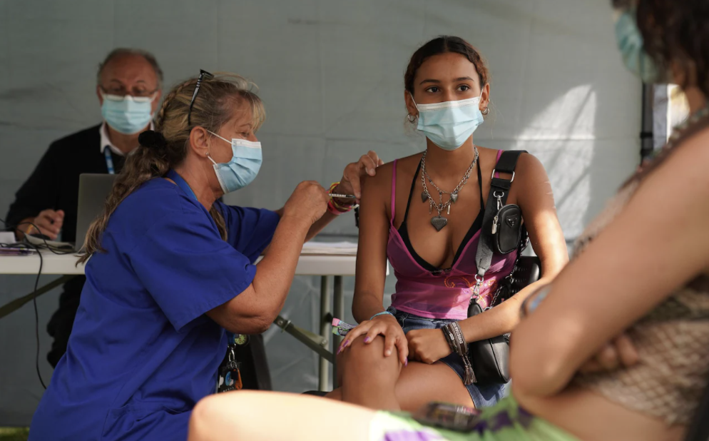 目前,英国官方正在敦促年轻群体采取“合理的”疫情防护措施,帮助防止传染给其他家庭成员,尤其是老年人。同时,官方还呼吁年轻人尽快接种疫苗,还在音乐节场地设置了免预约快速接种临时点。