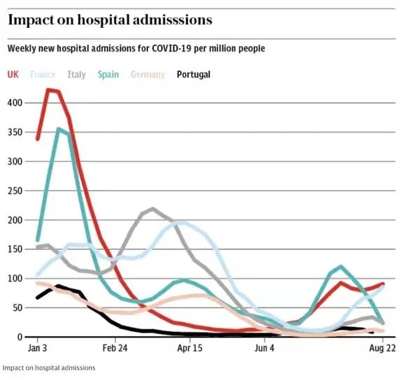 各国新冠病例对住院的影响 | 图片来源TheTelegraph