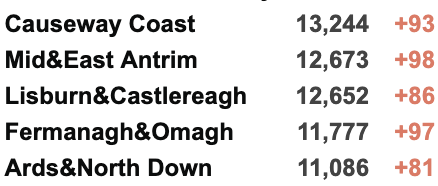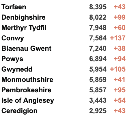 北爱尔兰的感染率则有所下降,目前感染率是每65人中有一人感染;威尔士目前的趋势不确定,但感染率是英国最低的,为每110人中有一人感染。