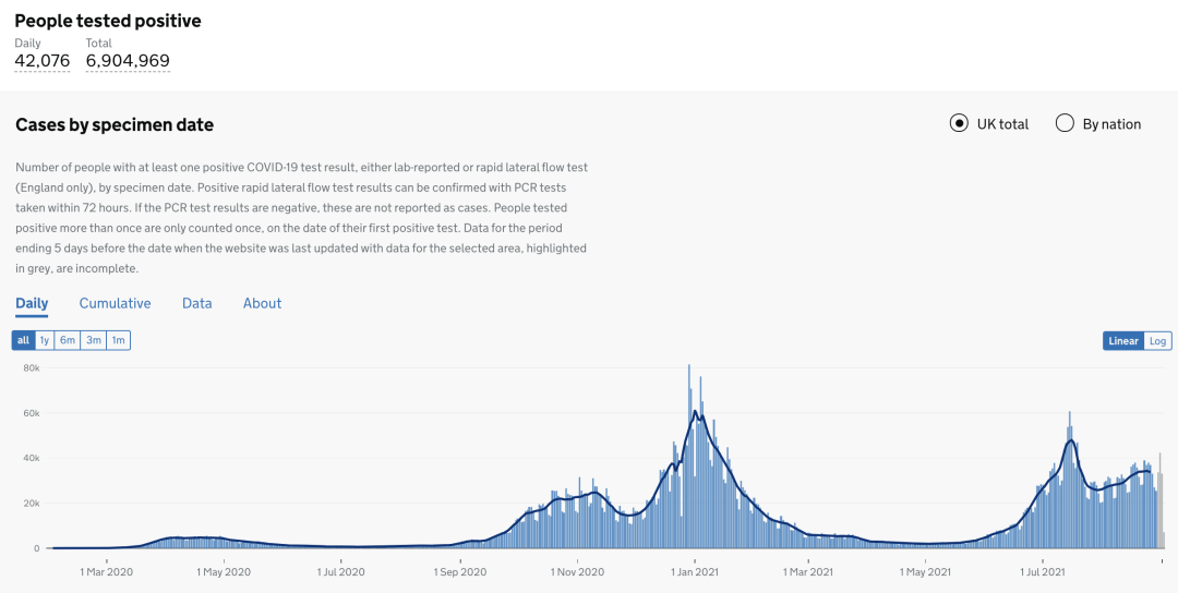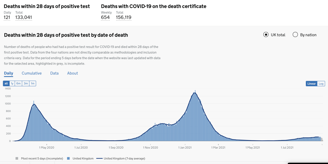 英国全境截至今日,已接种第1剂疫苗共48,171,998(+40,002);已接种第2剂疫苗共43,142,747人(+119,375)。