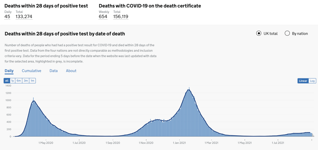 截至9月4日政府dashboard最新数据发布之时,英国首相鲍里斯(Boris Johnson)计划从本月底开始,在夜总会和其他大型室内场所强制实施疫苗护照,届时所有18岁以上的人都需出示自己的疫苗接种状况。