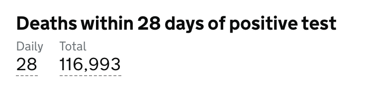目前英格兰地区使用呼吸机的新冠患者有909人(+20);病亡新冠患者总计116,993人(+28)。