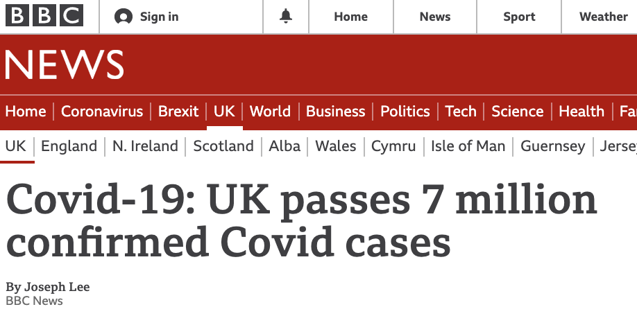 官方数字显示,自疫情开始以来,英国已经记录了超过700万例新冠确诊。但在疫情期间感染的真实人数可能要比检测出的数据高得多,尤其是在早期缺乏检测盒的阶段——根据剑桥大学的疫情建模,自疫情开始以来,英格兰有1,700万人被感染,约占人口的30%。