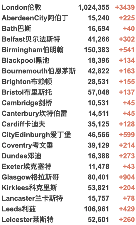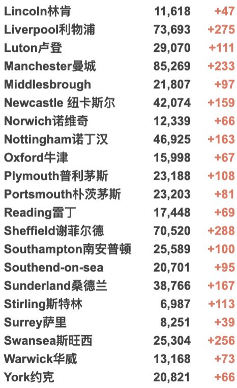 英国大学城市疫情具体数据