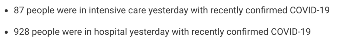 从2020年3月5日以来,苏格兰地区一共有19,588名(+93)确诊患者出院。截至9月9日午夜,近期住院的疑似/确诊新冠患者928名(+45),其中87名(+5)确诊新冠在重症监护室ICU。