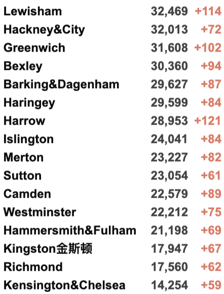 英国疫情实时地图 / 城区具体数据