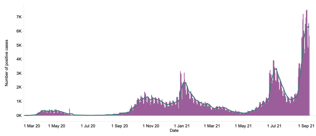 截至9月初,苏格兰一半以上区域的两周新冠感染率全部高于每10万人1,000例确诊。相比之下,威尔士和北爱尔兰的部分地区也高于每10万人1,000例确诊。英格兰的9个地区均低于该水平。