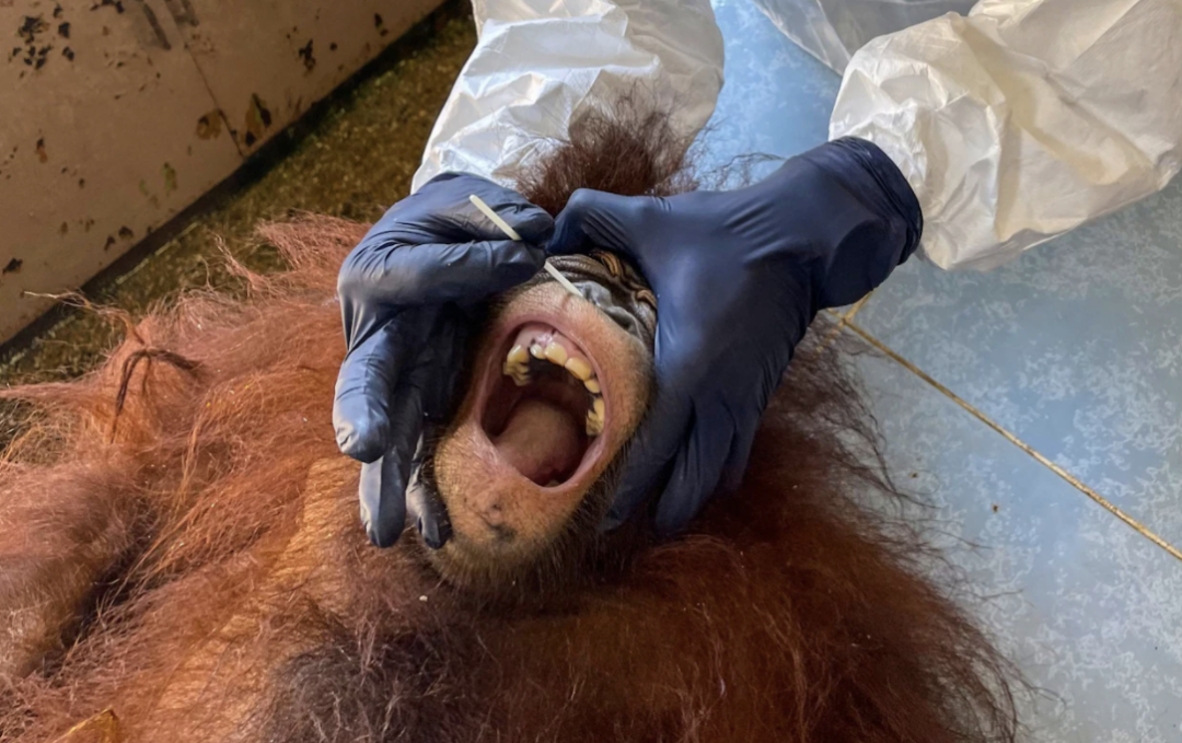 9月13日(周一),马来西亚数十只濒危物种:红毛猩猩接受了新冠检测:身着防护服的兽医给猩猩进行鼻拭子检测。据悉,这是东南亚国家对红毛猩猩进行的首次病毒检测,是由于康复中心和野生动物园的工作人员被感染后政府下令进行的。
