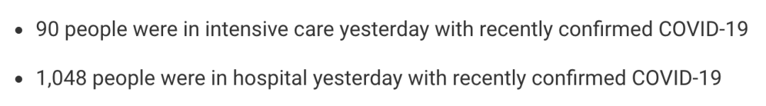 从2020年3月5日以来,苏格兰地区共有19,837名(+156)确诊患者出院。截至9月13日午夜,近期住院的疑似/确诊新冠患者1,048名(+71),其中90名(+8)确诊新冠在重症监护室ICU。