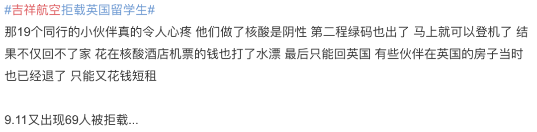 “另外,回国前很多人已经到期退订了英国的公寓,处理了所有生活用品,满心期待地安排好了回国的行程。吉祥航空现在让我们回英国,我们根本就没有地方住了。而且这一来一回,留学生平白无故又多承担了很多感染新冠的风险,他们应该承担这样的压力和责任吗?”