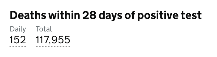 目前英格兰地区使用呼吸机的新冠患者有888人(+2);病亡新冠患者总计117,955人(+152)。