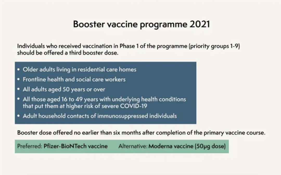 9月14日(周二),Jonathan Van-Tam教授、June Raine博士和Wei Shen Lim教授在英国唐宁街的新闻发布会上宣布:JCVI已经建议英国政府启动强化疫苗接种推广活动:50岁以上的人在接种第二剂6个月后可开始接种。。