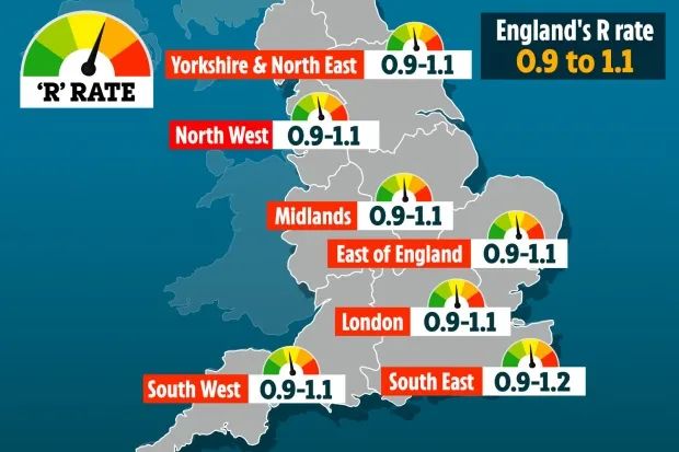 英国政府9月17日(周五)公布的数据显示,英国新冠病毒本周的感染率R值维持在0.9到1.1之间。