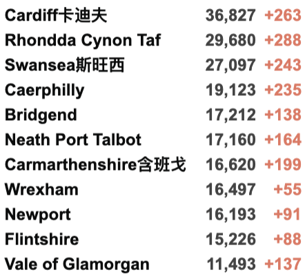 自8月初以来,威尔士的病例急剧增加,尽管在过去10天里确诊病例的数字开始下降。目前,该地区的病例率为每10万中有494.3例,英格兰的病例率保持在347.9例。