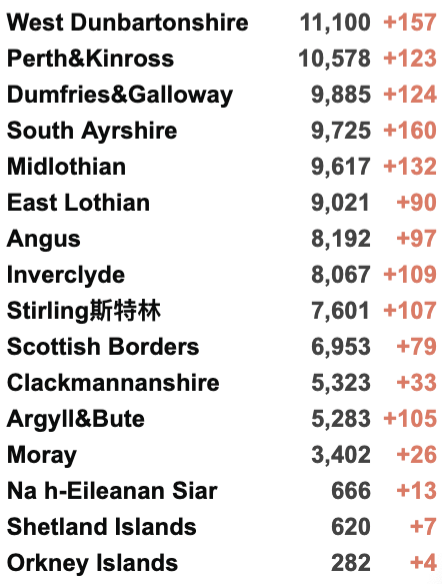 从2020年3月5日以来,苏格兰地区共有20,274名(+82)确诊患者出院。截至9月17日午夜,近期住院的疑似/确诊新冠患者1,037名(-17),其中87名(+7)确诊新冠在重症监护室ICU。