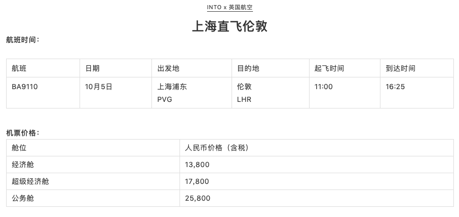 INTO教育集团于今日(9月17日)官宣,将携手英国航空,计划加开2021年10月5日由上海直达伦敦的包机航班: