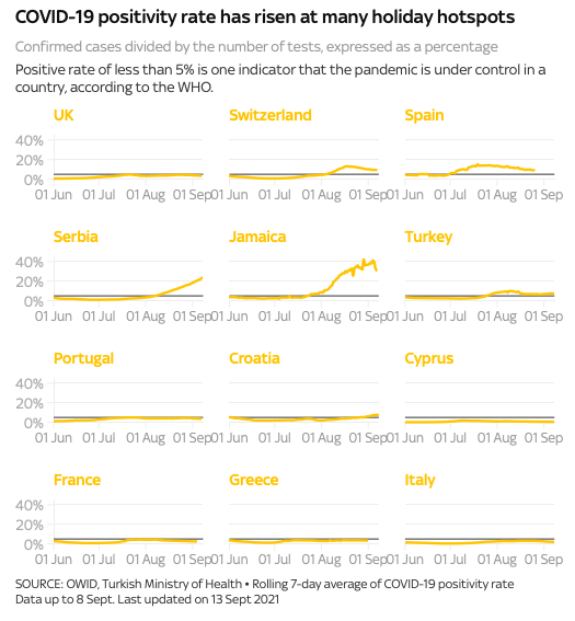 英国热门旅行国家阳性率数据 | 信息来源SOURCE