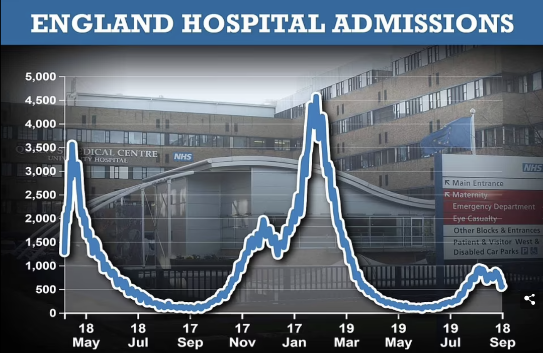 9月21日(周二),根据英国国家医疗服务系统NHS的最新数据显示,目前新冠住院患者的数字比9月14日下降了14%,再次显示了疫苗的作用。