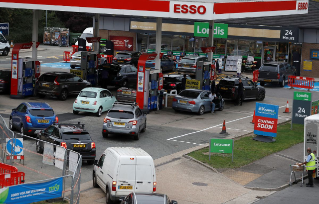 英国石油公司表示,由于当地恐慌性购买迫使,导致昨日英国近三分之一的加油站两种主要的燃料均以售罄。这种情况迫使英国政府暂停石油能源竞争法——允许企业合作缓解短缺。其他一些运营商不得不定量供应,还有的则直接关闭了加油站。
