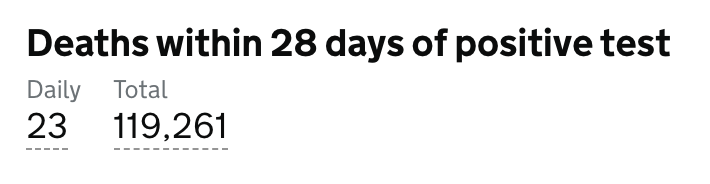 目前英格兰地区使用呼吸机的新冠患者有730人(*);病亡新冠患者总计119,261人(+23)。