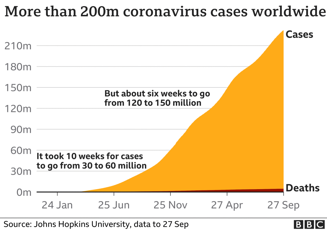世界的累计确诊人数截止9月28日17:00超过2亿3,342万例(+510k),死亡超过477.6万例(+7k)。