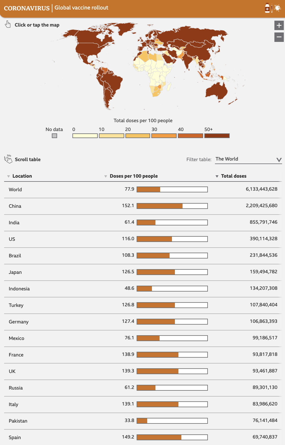 全球平均每100人接种疫苗数量最高的10个国家