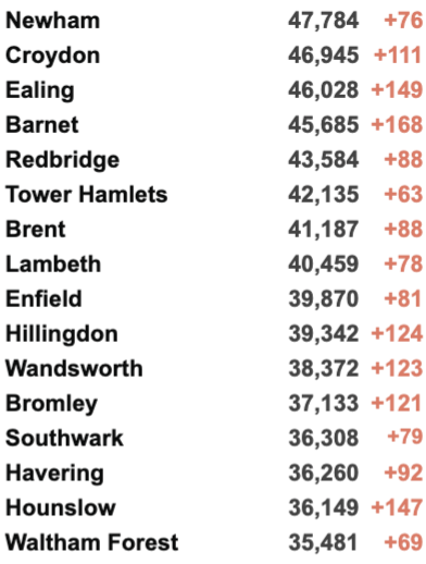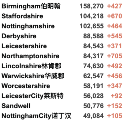 英国疫情实时地图 / 城区具体数据