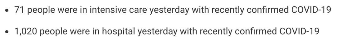 从2020年3月5日以来,苏格兰地区共有21,221名(+94)确诊患者出院。截至9月30日午夜,近期住院的疑似/确诊新冠患者1,020名(-7),其中71名(-2)确诊新冠在重症监护室ICU。