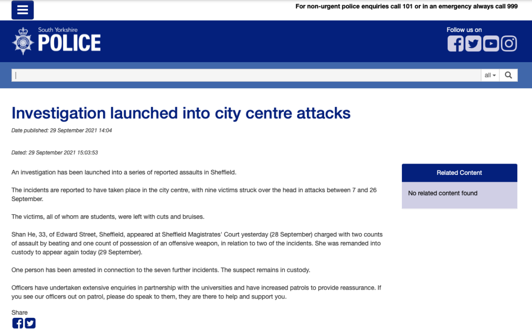 目前,该地区的警方与谢菲尔德大学正在合作进行广泛调查,并加强了周围的巡逻以提供保障。如果看到警员,不要慌张,他们是为了帮助维护当地治安。