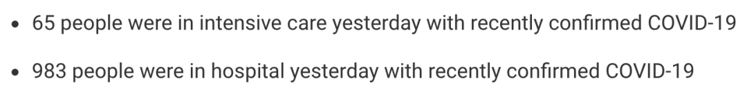 从2020年3月5日以来,苏格兰地区共有21,383名(+162)确诊患者出院。截至10月1日午夜,近期住院的疑似/确诊新冠患者983名(-37),其中65名(-6)确诊新冠在重症监护室ICU。