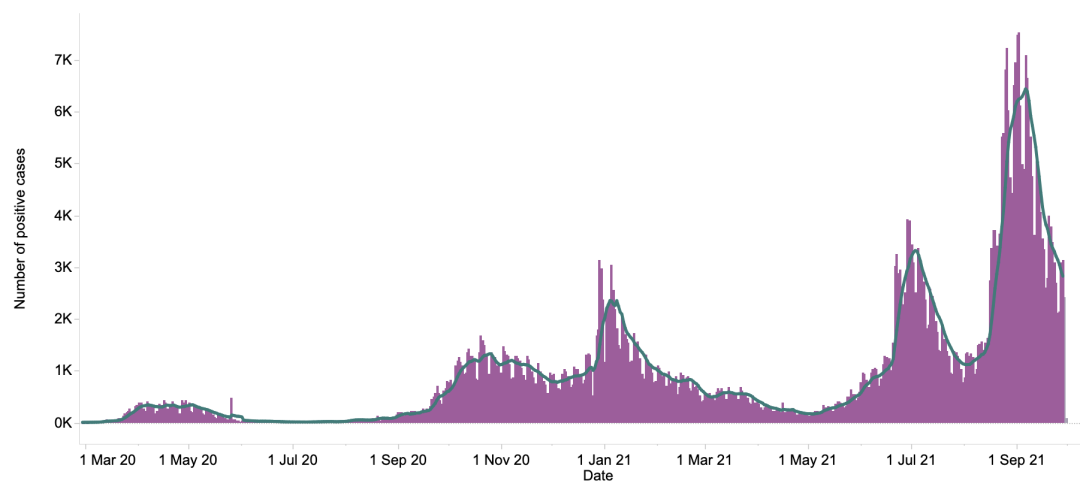 英国日增确诊案例趋势图