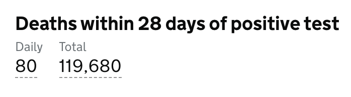 目前英格兰地区使用呼吸机的新冠患者有671人(-1);病亡新冠患者总计119,680人(+80)。