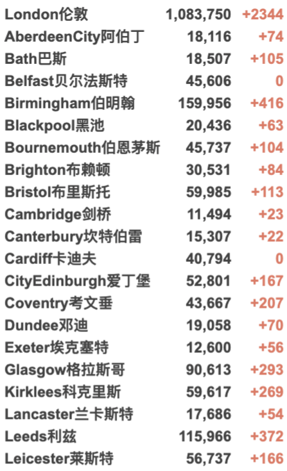 英国大学城市疫情具体数据