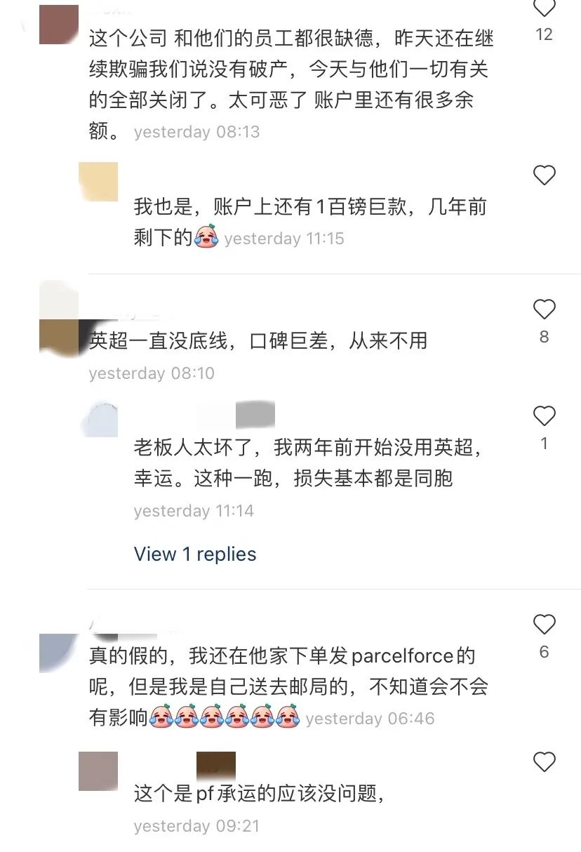 昨日(10月2日),许多社交平台上的用户网友爆料称,英国最大的华人物流公司之一——英超物流公司疑似由于欠款和货物运输问题倒闭,合伙人卷款逃跑。