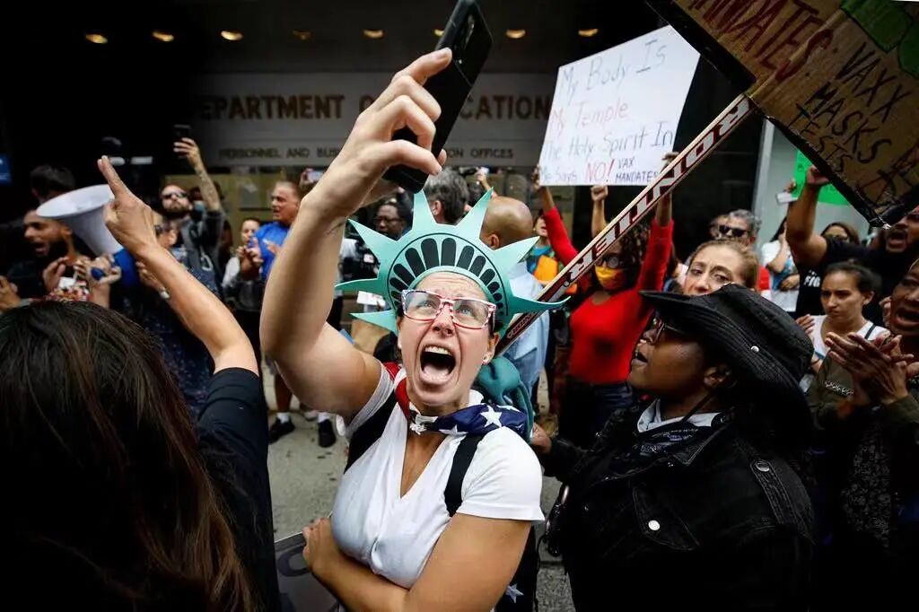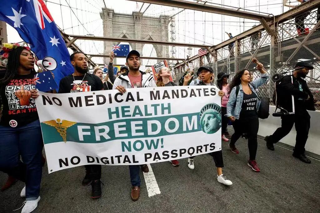 当地时间周一(10月4日),美国纽约爆发了抗议活动,反对为该市学校系统的教师和工作人员强制接种疫苗的计划。在布鲁克林大桥(Brooklyn Bridge)上拍到的照片显示,游行者的标语写道“现在就有健康自由”,其他标语则说,“我的身体,我自己做主”。