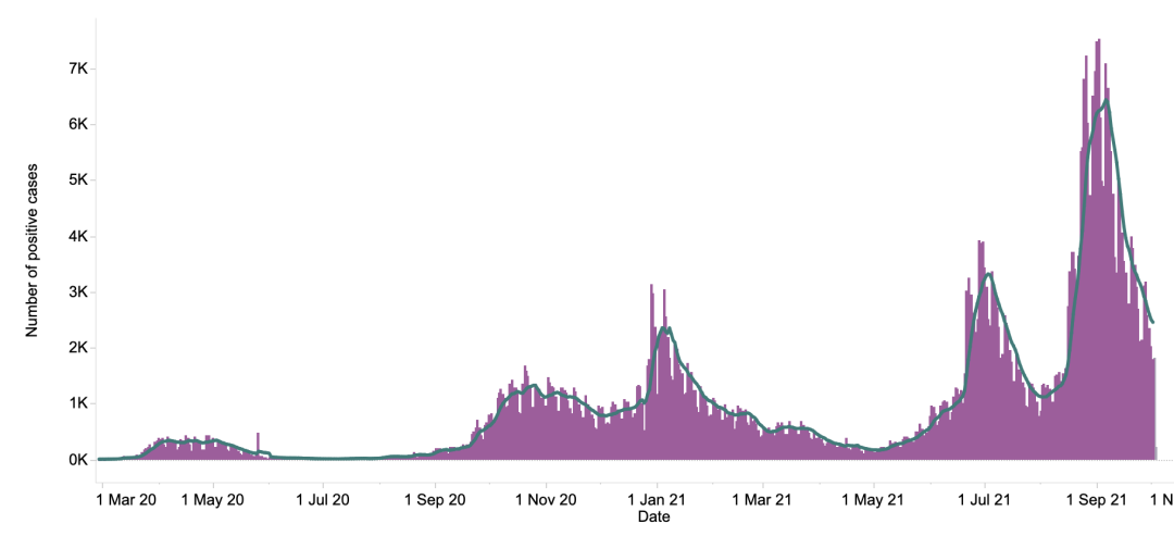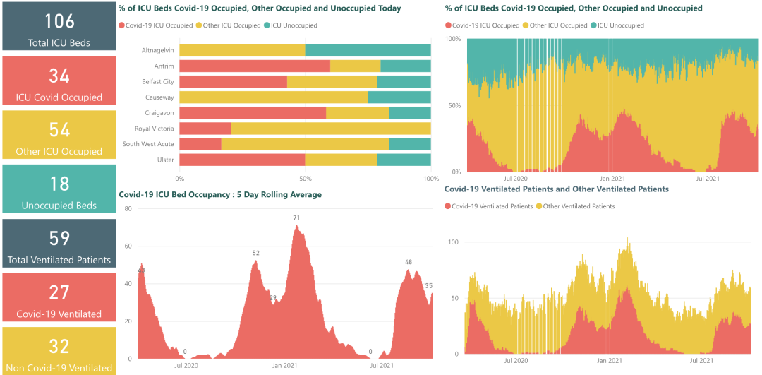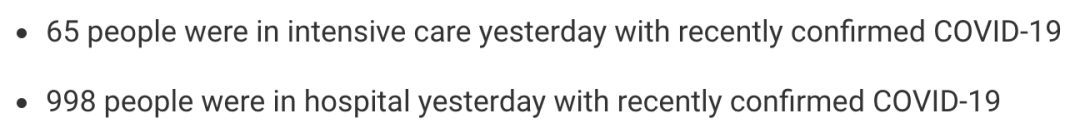 从2020年3月5日以来,苏格兰地区共有21,589名(+73)确诊患者出院。截至10月5日午夜,近期住院的疑似/确诊新冠患者998名(-3),其中65名(-2)确诊新冠在重症监护室ICU。