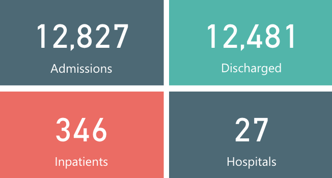 10月5日数据:住院的确诊新冠患者共27人(=),已出院的确诊新冠患者12,481人(+31),治愈率目前为99.8%。重症ICU疑似/确诊新冠患者34(-3),空余的重症ICU床位18张(+1)。