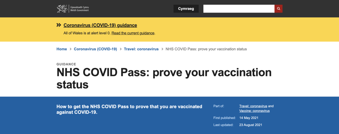 威尔士:https://gov.wales/nhs-covid-pass-prove-your-vaccination-status