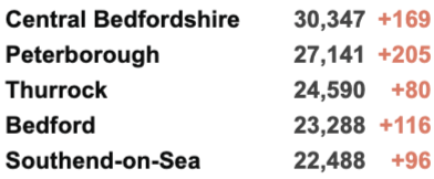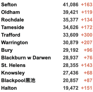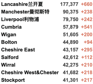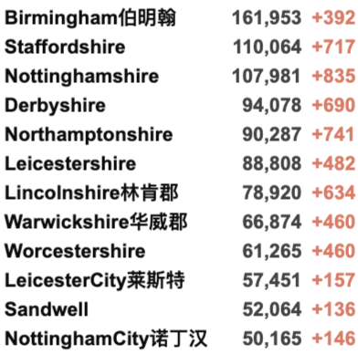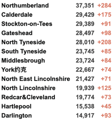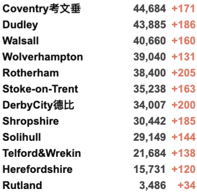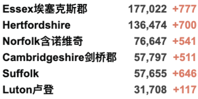 此外,目前英国不同地区的情况也有很大差异,其中位于英格兰的Kettering疫情感染率最高。