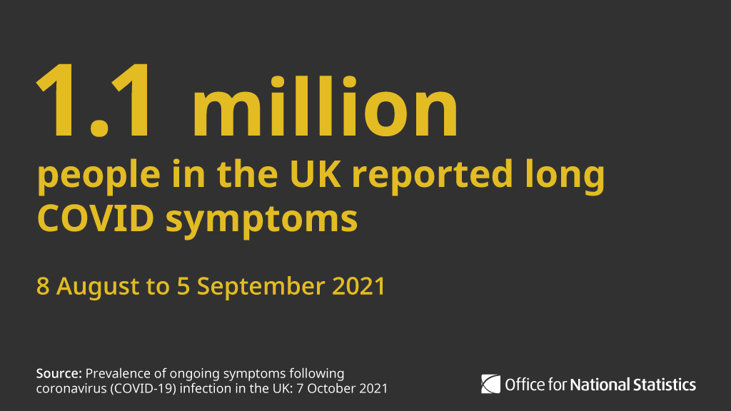 国家统计局报告说,在自我报告长期新冠的患者中,有831,000人,即77%的人在至少在怀疑/确诊感染新冠的随后12周内有长期的症状;另外405,000人,即37%的人说,他们被感染后一年多的时间里有长达数个月甚至一年以上的症状。