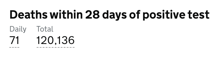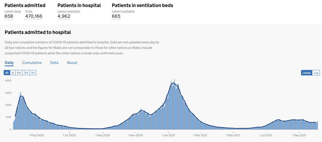 目前英格兰地区使用呼吸机的新冠患者有665人(+2);病亡新冠患者总计120,136人(+71)。