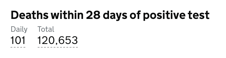 目前英格兰地区使用呼吸机的新冠患者有657人(=);病亡新冠患者总计120,653人(101)。