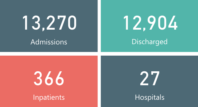 10月19日数据:住院的确诊新冠患者共27人(=),已出院的确诊新冠患者12,904人(+29),治愈率目前为99.8%。重症ICU疑似/确诊新冠患者31(-3),空余的重症ICU床位5张(-1)。