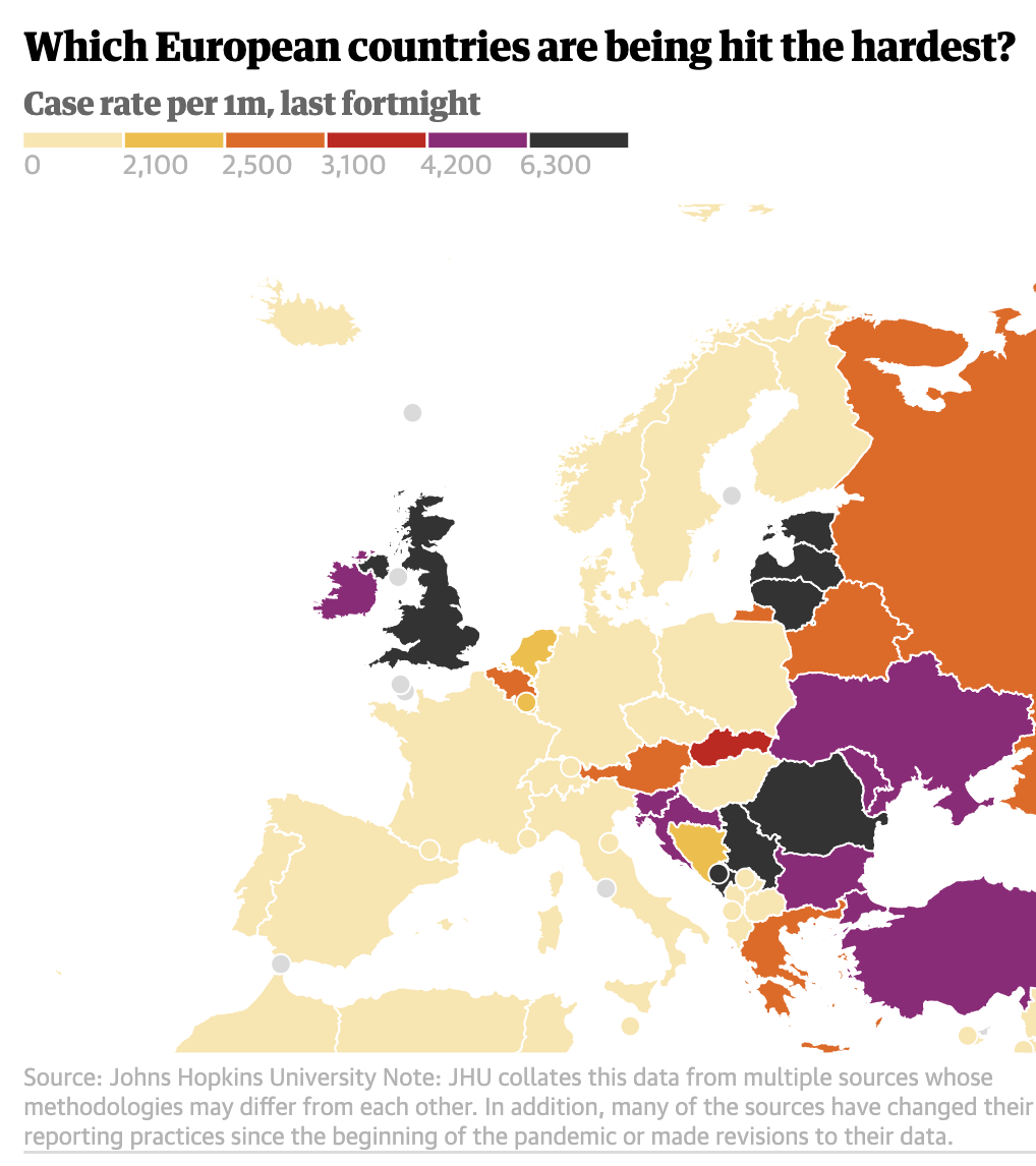 乌克兰创造了当地新冠死亡人数的每日新高;波兰的日增确诊也正在经历高达85%的上升。