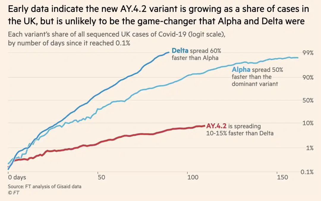 除了在英国外,美国和丹麦也发现了一些该变种病例,但后来新感染AY.4.2的病例已经减少。