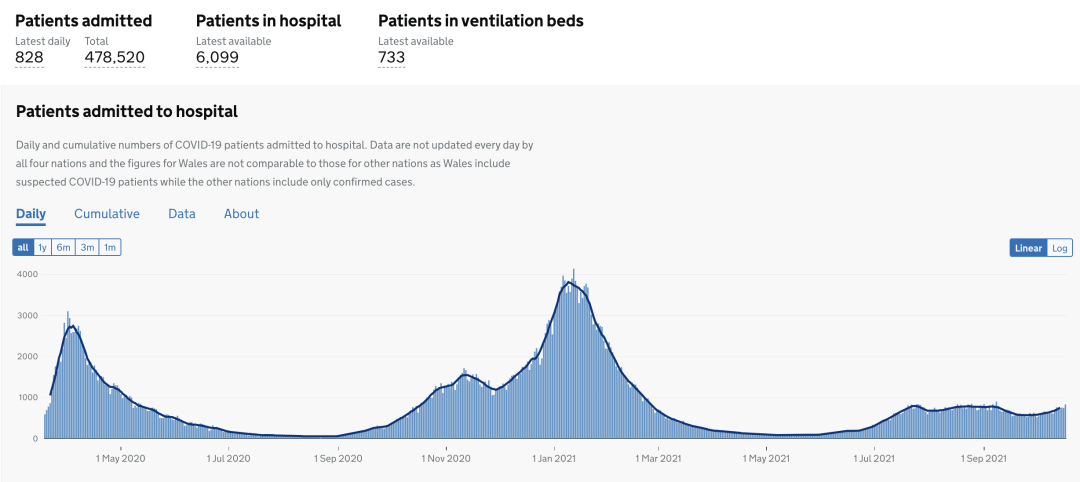 10月19日数据:目前住院的确诊新冠患者6,099人,累计住院新冠患者总数为478,520(+828)。