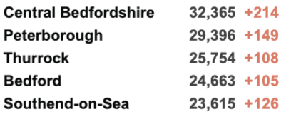 根据约翰霍普金斯大学新冠数据显示,过去28天内新增确诊最多的10个国家地区当中,英格兰地区的新增感染人数遥遥领先: