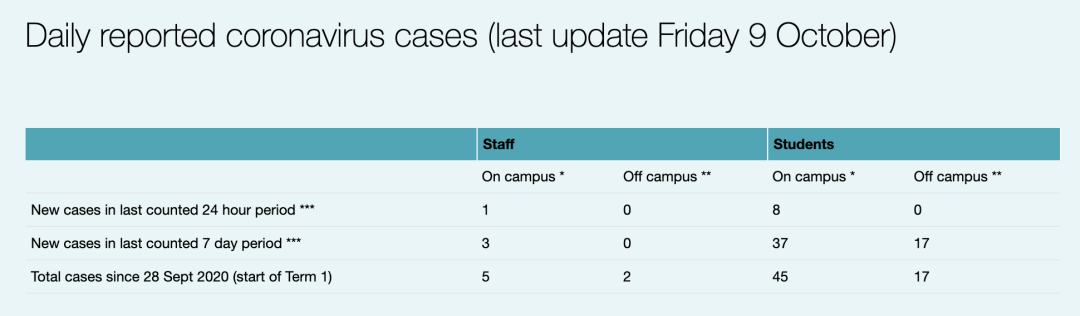 今日,UCL开始公布校内校外新冠确诊数据。