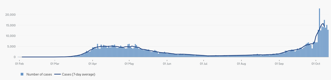 英国日增确诊案例趋势图