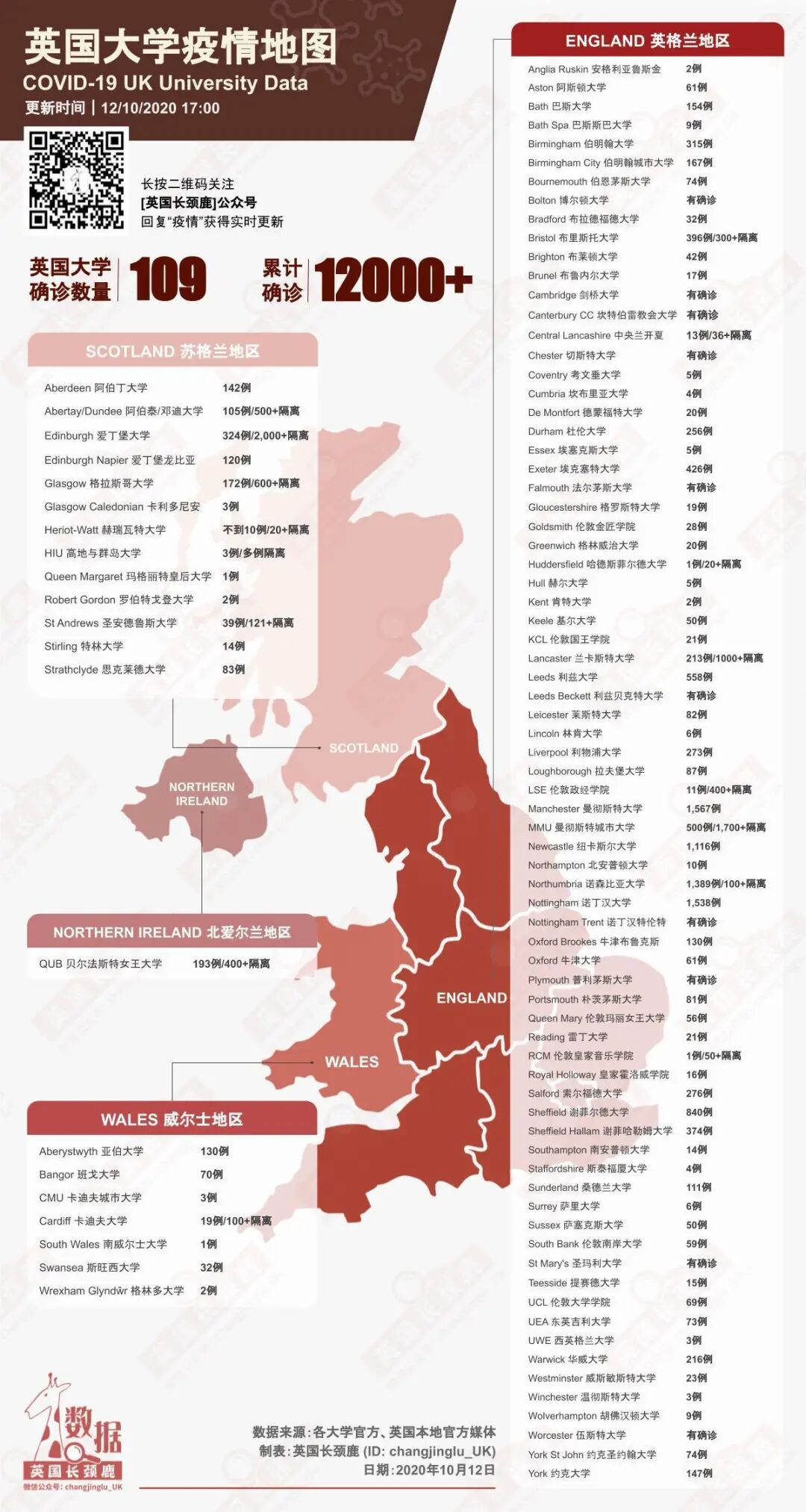 目前,英国已经有109所学校发现疫情;超过12,000+名学生确诊。